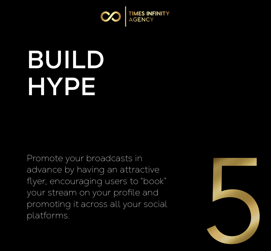 You your broadcasts in advance by having an attractive flyer, encouraging user to ‘book’ your stream on your profile and promoting it across all your social platforms.