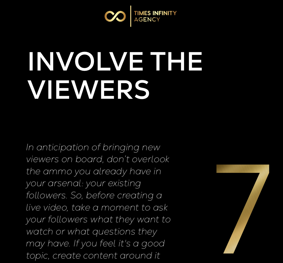 In anticipation of bringing new viewers on board, don’t overlook the ammo you already have in your arsenal: your existing followers. So, before creating a live video, take a moment to ask your followers what they want to watch or what questions they may have. If you feel its a good topic, create content around it.